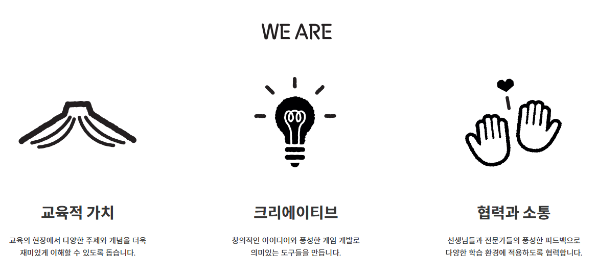 > 교육용 보드게임 제작 및 판매, 교육 관련 일자리 창출, 학교 및 공공기관, 영리 기업 및 비영리 단체들에게 교육서비스 제공 등