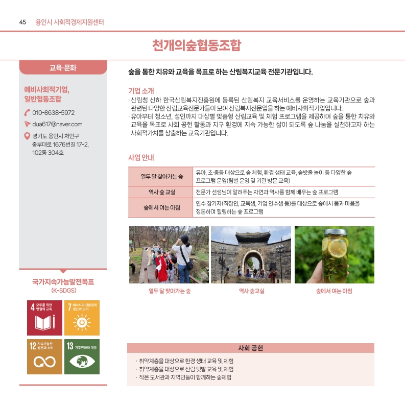 | 분류 | 일반협동조합 | 기업명 | 천개의숲 협동조합 |