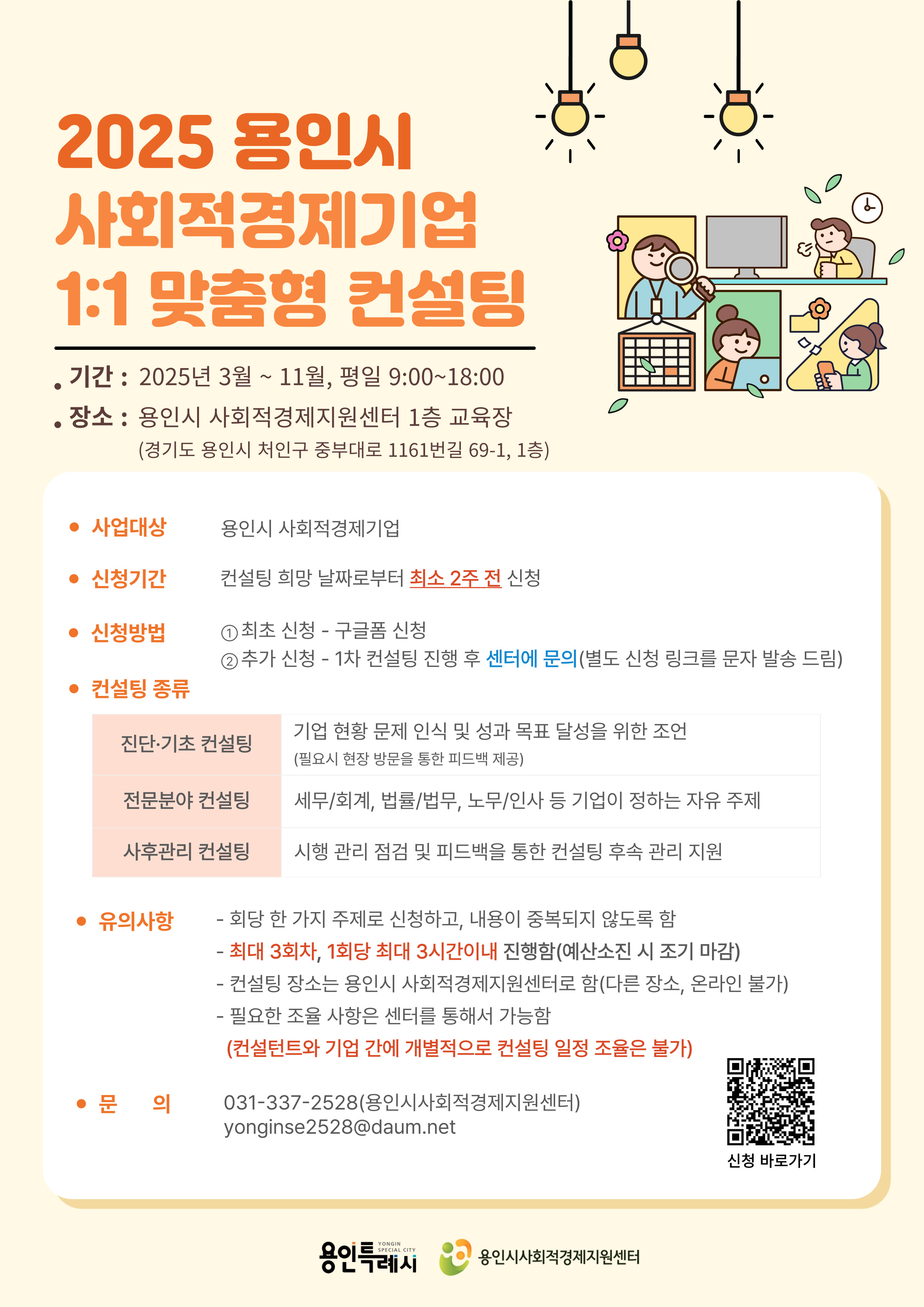 2025년 용인시 사회적경제기업 1:1 맞춤형 컨설팅 신청 기업을 모집합니다. 많은 참여 바랍니다.