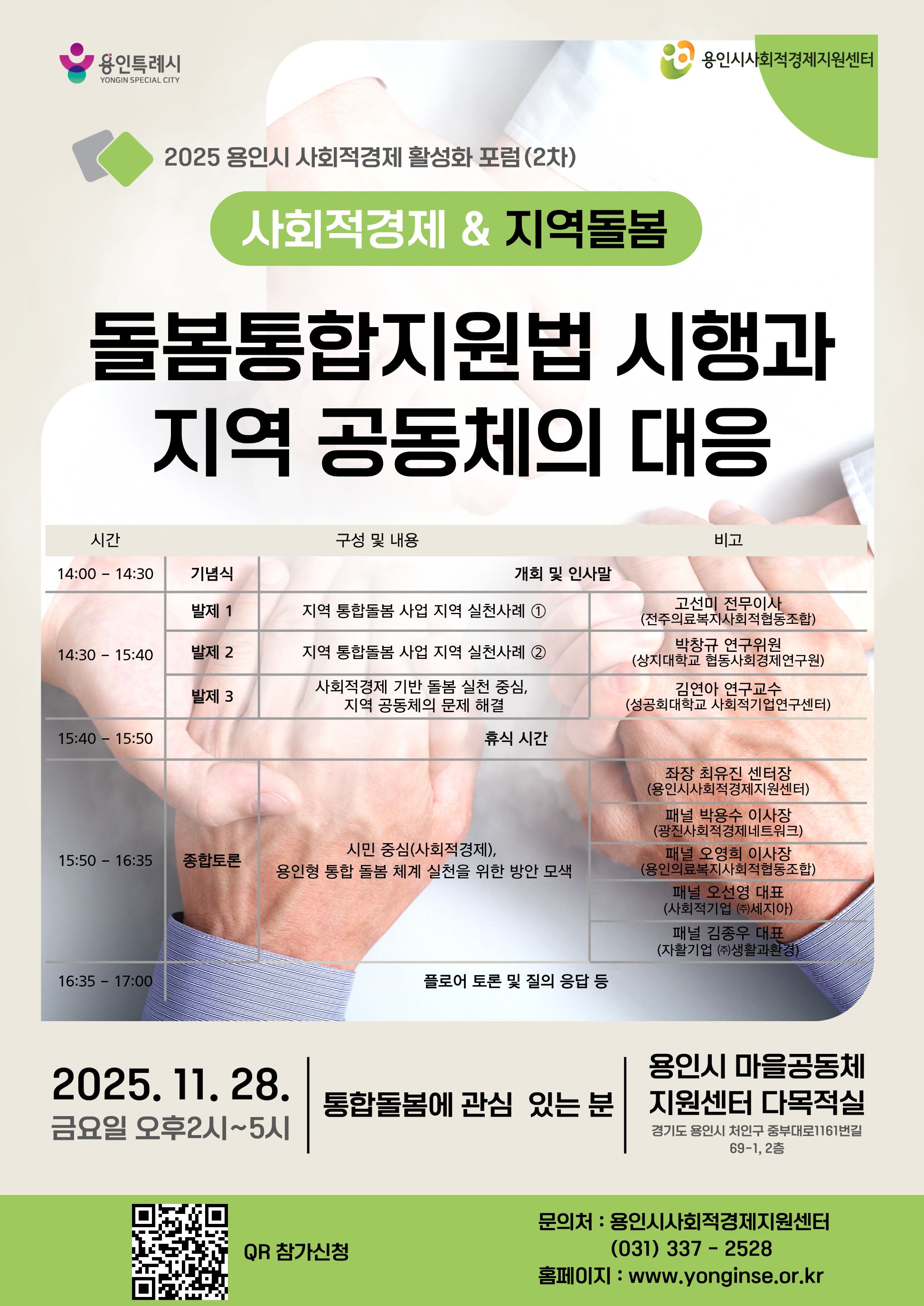 - 행 사 명 : 2025 용인시 사회적경제 활성화 포럼(제2차)
