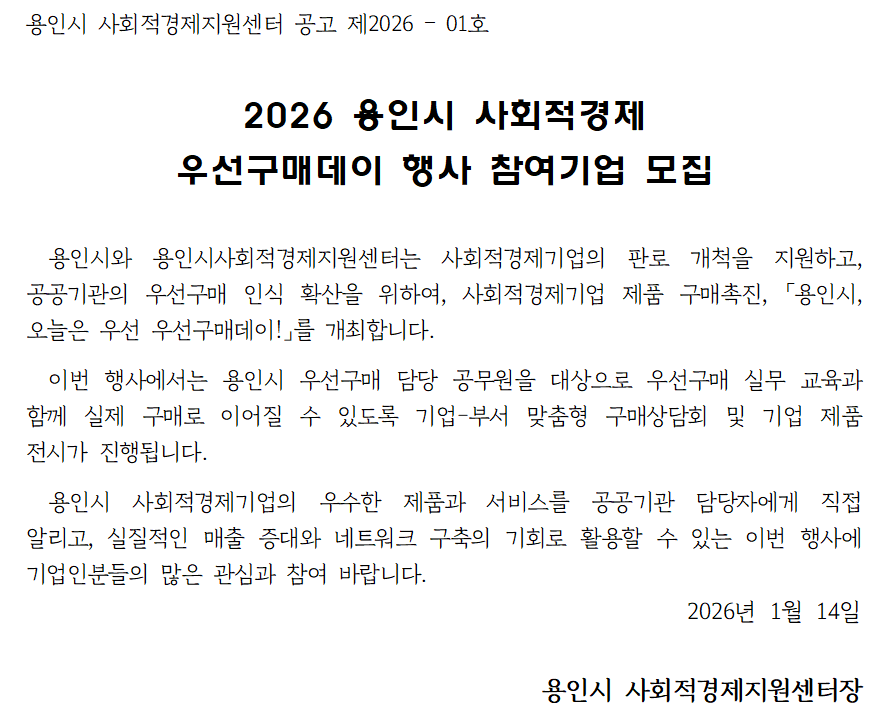 □ 모집 대상 : 공공기관 납품 의사가 있는 용인시 사회적경제기업
