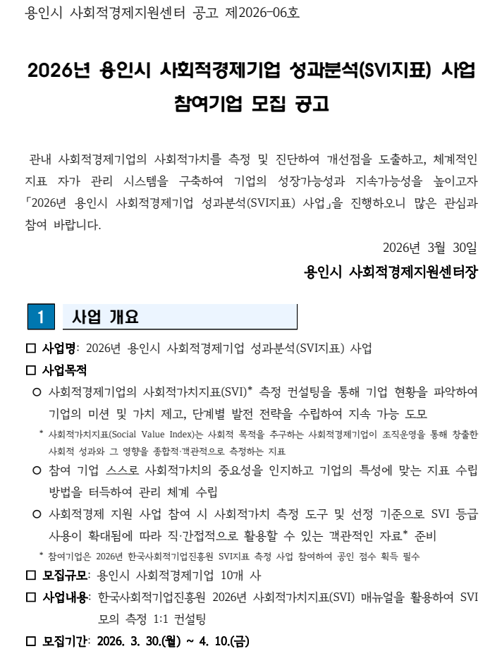 * 대상 : 사회적가치지표(SVI)에 관심 있는 관내 사회적경제기업 임직원