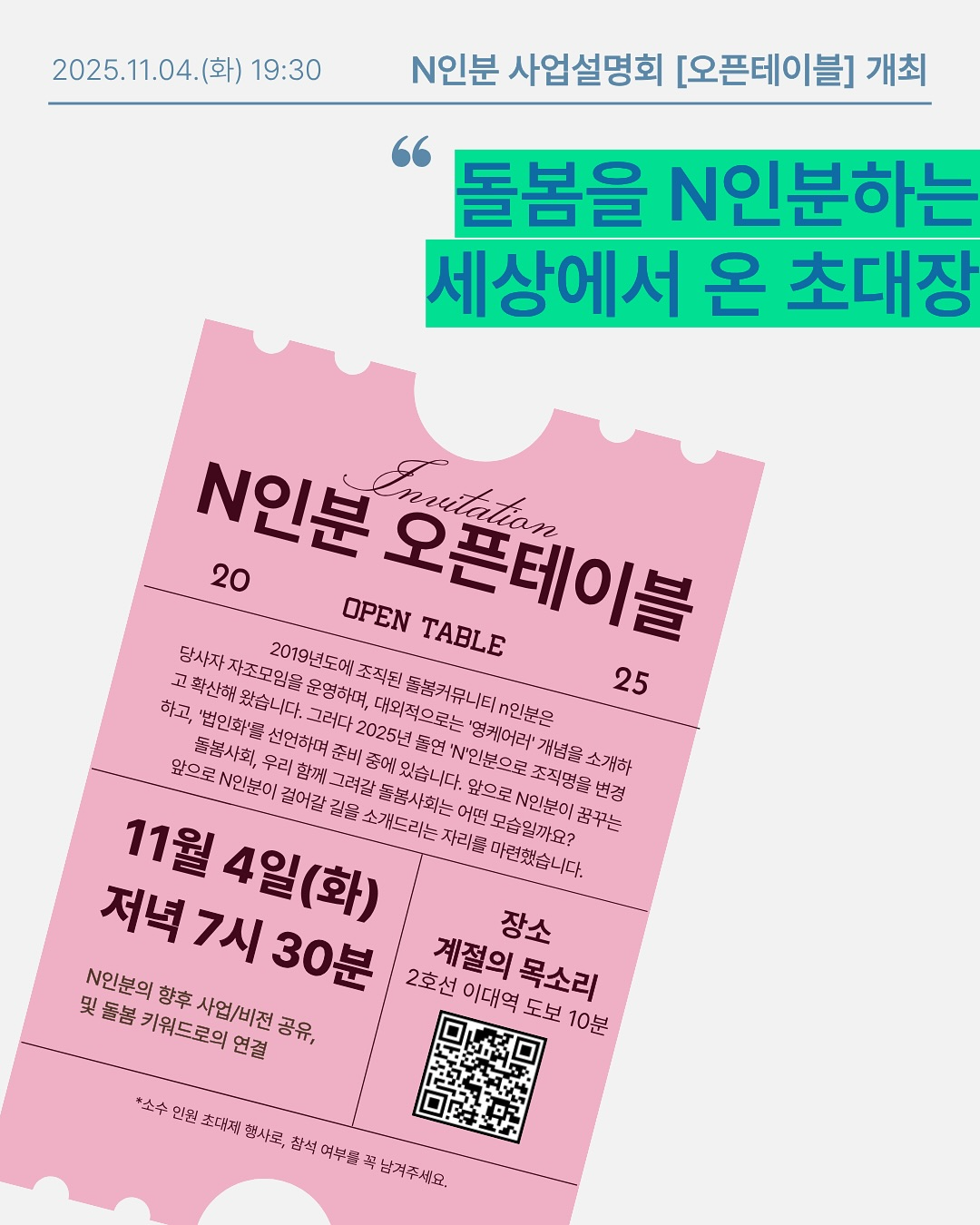 ꁘ 현장엔 못오시더라도, 앞으로 “N인분”의 소식을 받아보고 싶으신 분은 여기에 신청해주세요 → https://nuli.do/n-updates