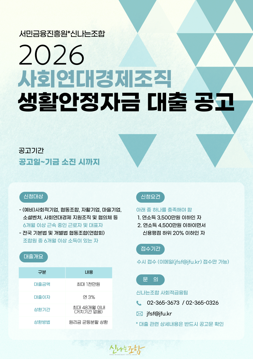 신나는조합 사회적금융팀 02-365-3673 / 02-365-0326