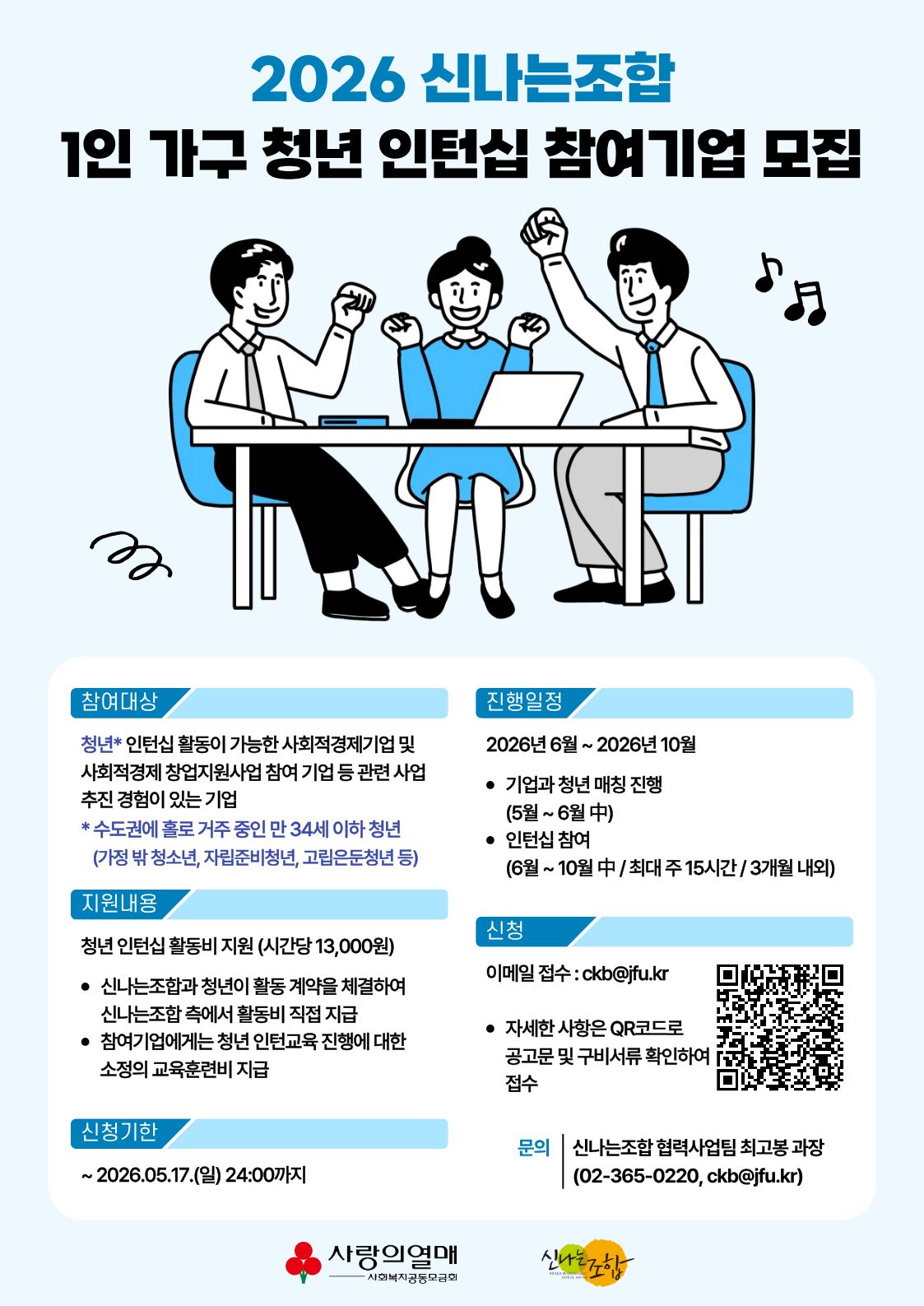 [신나는조합] 2026 신나는 조합 1인 가구 청년 인턴십 참여기업 모집