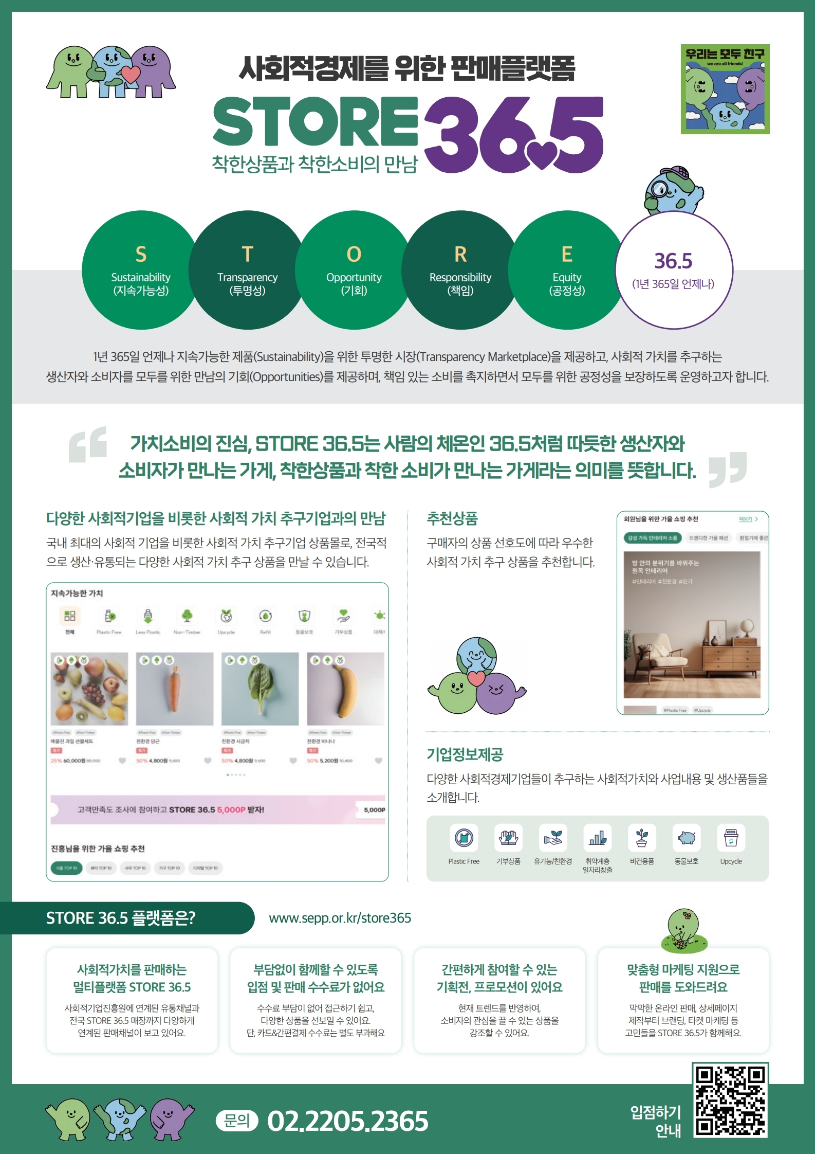 STORE 36.5와 가치장터는 사회연대경제기업의 온라인 판매 확대를 위한 공식 플랫폼입니다.
