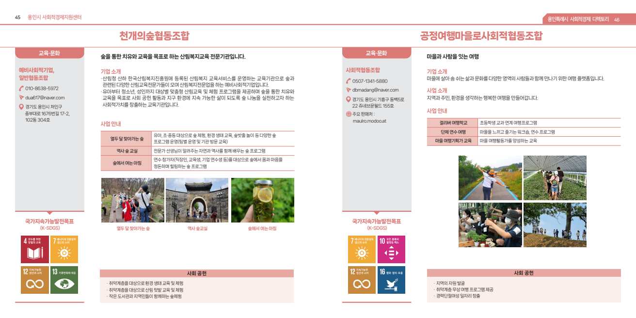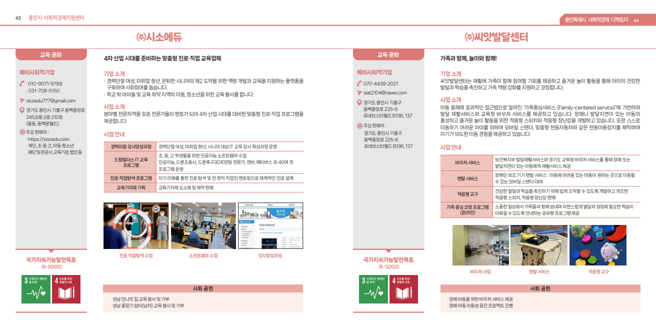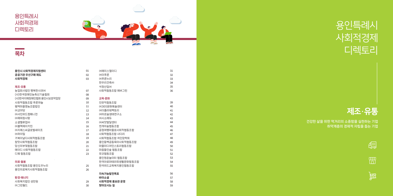 이번 디렉토리북에는 용인시 사회적경제기업 44개사의 제품/서비스 등을 소개하고 있습니다.