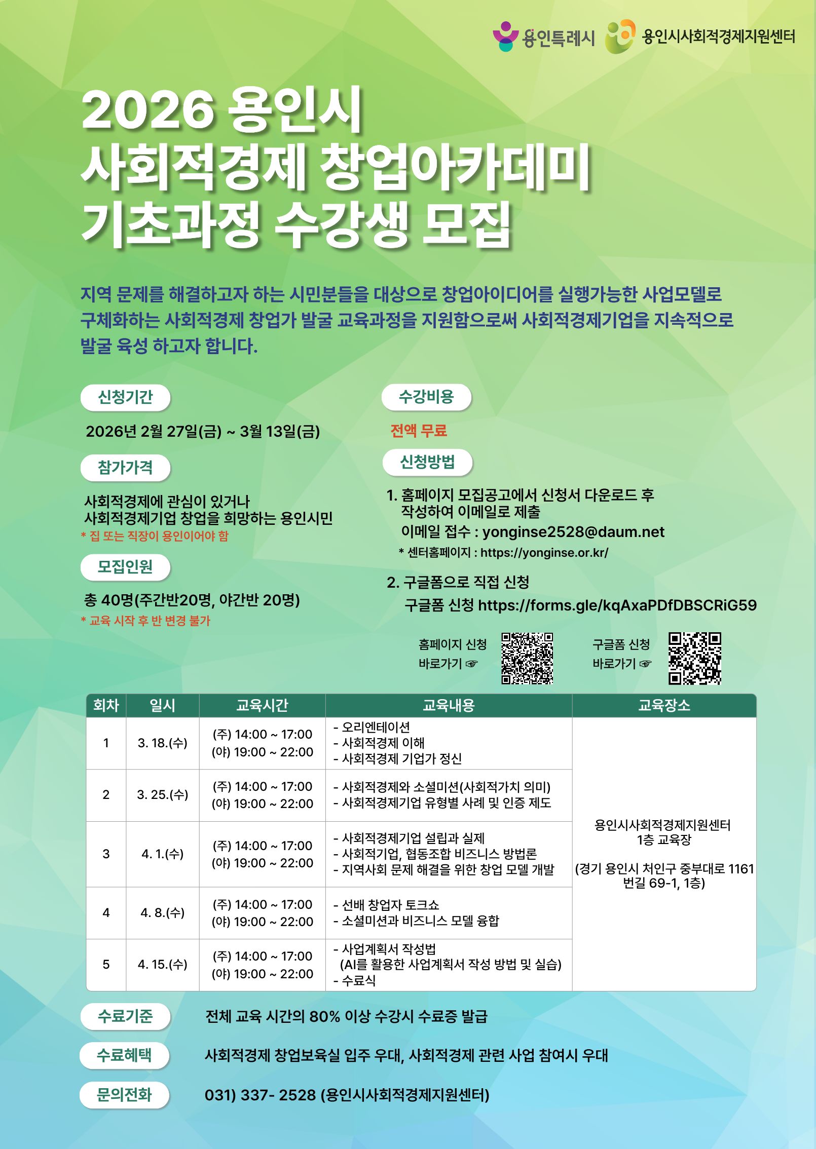 2026 용인시 사회적경제 창업아카데미 기초과정 교육생 모집공고(~3. 13.(금))