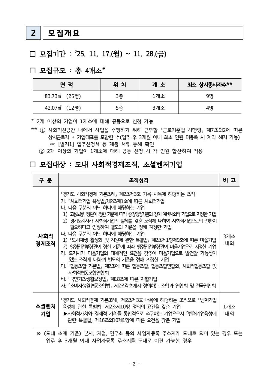 2026년 경기도 (예비)마을기업 지정계획 공고(~12.2.(화))