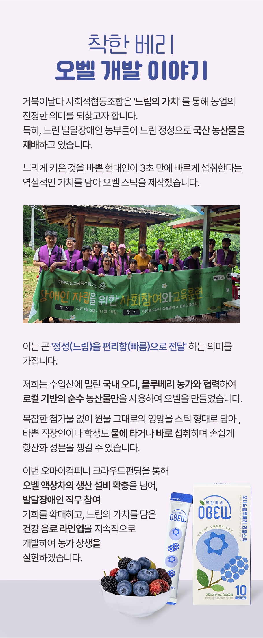 <오디 + 블루베리의 정직한 베합, 착한베리 오벨 스틱> 프로젝트가 오픈되었습니다.