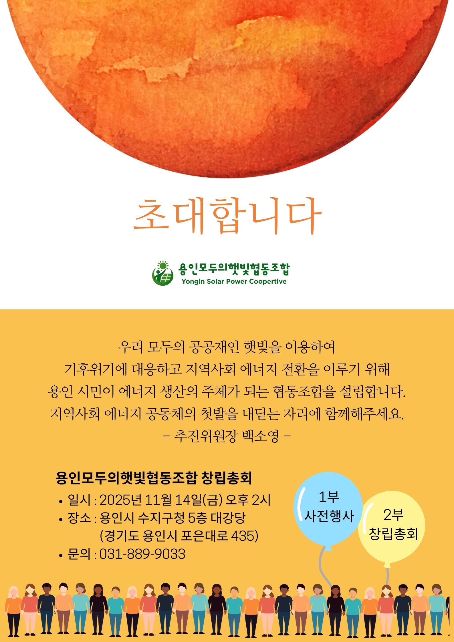 가칭)용인모두의햇빛협동조합 조합원 모집 & 창립총회 안내